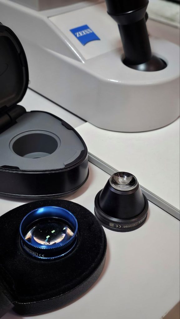 Огляд очного дна в “Новому погляді” можливий за допомогою високодіоптрійної лінзи, а також прямого офтальмоскопа.